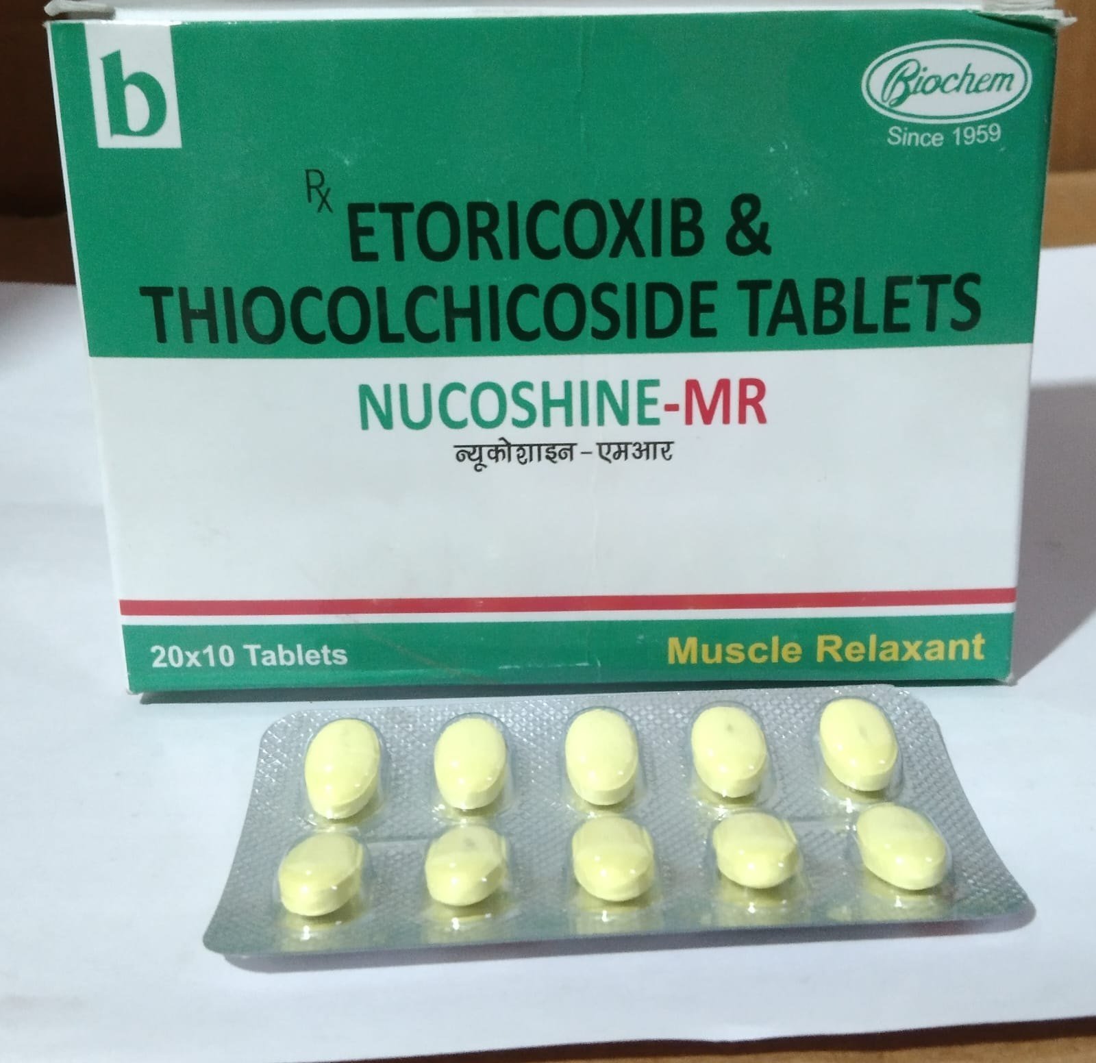 The NUCOSHINE MR Tablet is a purposefully-formulated medication combining Etoricoxib (60mg) and Thiocolchicoside (4mg) to deliver exceptional relief for pain and inflammation. Whether you’re troubled by muscle stiffness, spasms, or inflammatory conditions, this dual-action solution is designed to promote faster recovery and restore mobility, making it an essential addition to your care regime.